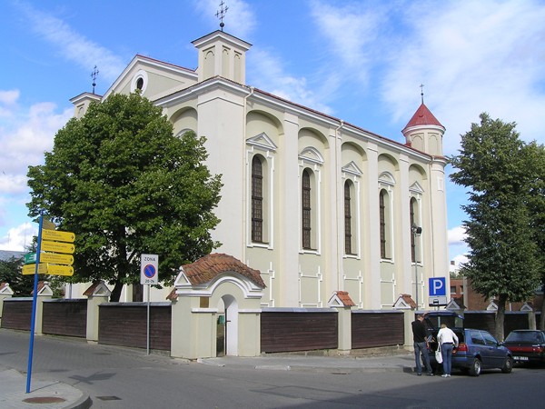 Potężna bryła tej budowli zmusza, by od niej zacząć spacer po mieście. Renesansową świątynię wystawili właściciele miasta, Radziwiłłowie: Krzysztof zwany Piorunem (1585-1640), bohater wojen z Moskwą oraz jego syn, znany nam już ? Janusz Radziwiłł (1612-55). Obaj byli protektorami kalwinizmu na Litwie, obaj spoczęli w podziemiach tej świątyni. Ich bogato zdobione i niedawno odrestaurowane pieczołowicie sarkofagi można zwiedzać? Tak przynajmniej nam się wydaje. Choć napisy na bramie mówią co innego, wnętrze zamknięte na głucho. Może mamy pecha.