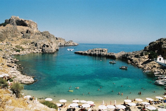 Kilkanaście minut drogi za miastem znajdujemy niezatłoczone, a niezwykłej urody plaże. Jedna z nich znajduje się w małej, otoczonej skałami zatoczce Anthony’ego Quinna. Aktor dostał ją w podziękowaniu za film ?Działa Nawarony?. Inna urokliwa plaża znajduje się u podnóża studuwdziestometrowej skały, na której stoją resztki świątyni Ateny. Z drugiej strony skały przycupnęło miasteczko Lindhos ? labirynt wąskich uliczek, sklepików, knajpek.