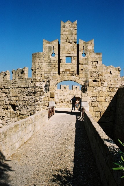 Bezpośrednio do portu przylega rodyjska starówka. Zachowała się nad podziw dobrze. Może dzięki temu, że po tutejszych uliczkach można się poruszać jedynie pieszo? Najważniejsza z ulic ? deptak Odos Sokratous to w zasadzie jeden wielki bazar. Możemy tutaj kupić mniej lub bardziej wyszukane pamiątki: złotą biżuterią, dywany, gąbki i miniatury rycerzy w strojach joannitów.
