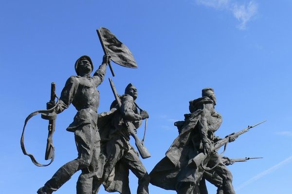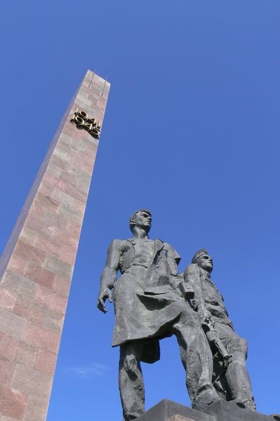 Na Placu Zwycięstwa wznosi się monumentalne dzieło socrealizmu. To Pomnik Bohaterskich Obrońców Leningradu. Budowla upamiętnia zwycięstwo Związku Radzieckiego w Wielkiej Wojnie Ojczyźnianej oraz przypomina tragiczne 900 dni, kiedy wojska hitlerowskie oblegały Leningrad. Pomnik składa się z kilku grup rzeźb przedstawiających postacie żołnierzy oraz mieszkańców miasta, którzy przez dwa i pół roku musieli znosić trudy życia w mieście-twierdzy. W tym czasie zginęło tutaj około miliona osób.