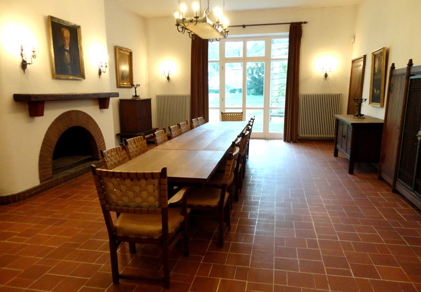 Każde z pomieszczeń dokładnie opisane jest na tablicach informacyjnych, ze starymi zdjęciami i planami, w językach niemieckim i angielskim. Z ich historią, ciekawostkami, informacjami o ludziach, którzy tu bywali, przy czym bez pomijania dosyć wstydliwego przecież okresu fascynacji gospodarzy nazizmem. Wyposażenie tych pokoi jest dosyć skromne, chociaż są w nich również meble, obrazy i inne przedmioty ze zbiorów rodzinnych. Płaskorzeźby zdobiące w kilku miejscach ściany i kolumny są jednak dosyć kiczowate.