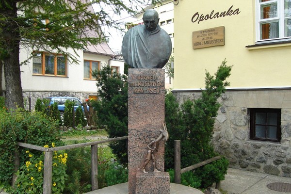 Kornel Makuszyński (1884 -1953) to autor bajkowego Koziołka Matołka oraz wielu innych powieści. Był pisarzem uwielbianym przez dzieci i młodzież bo to dla nich pisał. Był częstym gościem Zakopanego, a od 1934 r. do początku wojny pisarz wraz z żoną wynajmowali kilkupokojowe mieszkanie w willi „Opolanka” i bywali tu latem oraz zimą. W 1931 r. Kornel Makuszyński otrzymał tytuł Honorowego Obywatela Zakopanego. Czas wojny przeżył w Warszawie. Ponownie tu wrócił i osiedlił się na stałe 5 listopada 1944 r. Makuszyński był współzałożycielem Związku Pisarzy i Artystów. Od 1948 r. razem z Romanem Brandstaetterem i Januszem Meissnerem, kierował zakopiańskim Klubem Literackim. Należał również do Koła Pisarzy Podhalańskich w którym działali Jan Pawlikowski, Włodzimierz Wnuk, Maria Kasprowiczowa i wielu innych. Kornel Makuszyński został pochowany na Pękowym Brzyzku a jego grób zawsze pełen jest znaków bytności dzieci. Od 1966 r. z inicjatywy żony pisarza, w mieszkaniu urządzono muzeum biograficzne.