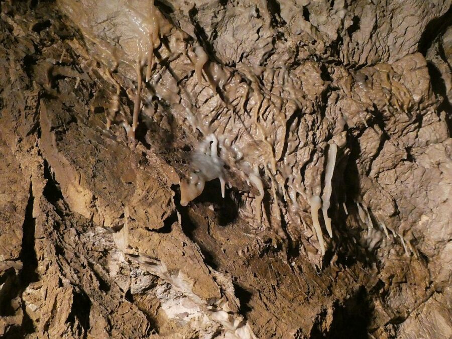 wytrącaniu się węglanu wapnia z kąpiącej ze sklepienia wody.