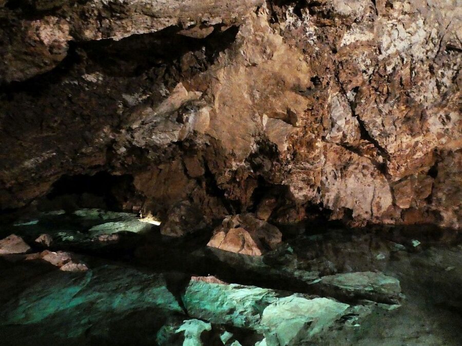 W budynku znajduje się kasa biletowa, poczekalnia, sklep z pamiątkami, toalety i stała wystawa eksponatów dotyczących jaskini. Chociaż długość odkrytych korytarzy wynosi ok. 1060 m, to trasa turystyczna ma 350 m a zwiedzanie zajmuje ok. 45 minut. W jaskini panuje temperatura od 7 do 9 st. C, a w jeziorach podziemnych woda ma 8 st. C. W powietrzu jest znaczna wilgotność, bo od 96 do100 proc. Na najniższym poziomie są podziemne jeziorka ze szmaragdową, krystaliczną wodą, widoczną na ostatnim zdjęciu. Jaskinie są dobrze oświetlone, mają ciekawą szatę naciekową w postaci stalaktytów, stalagmitów i stalagnatów oraz krzemienne listwy i gzymsy.