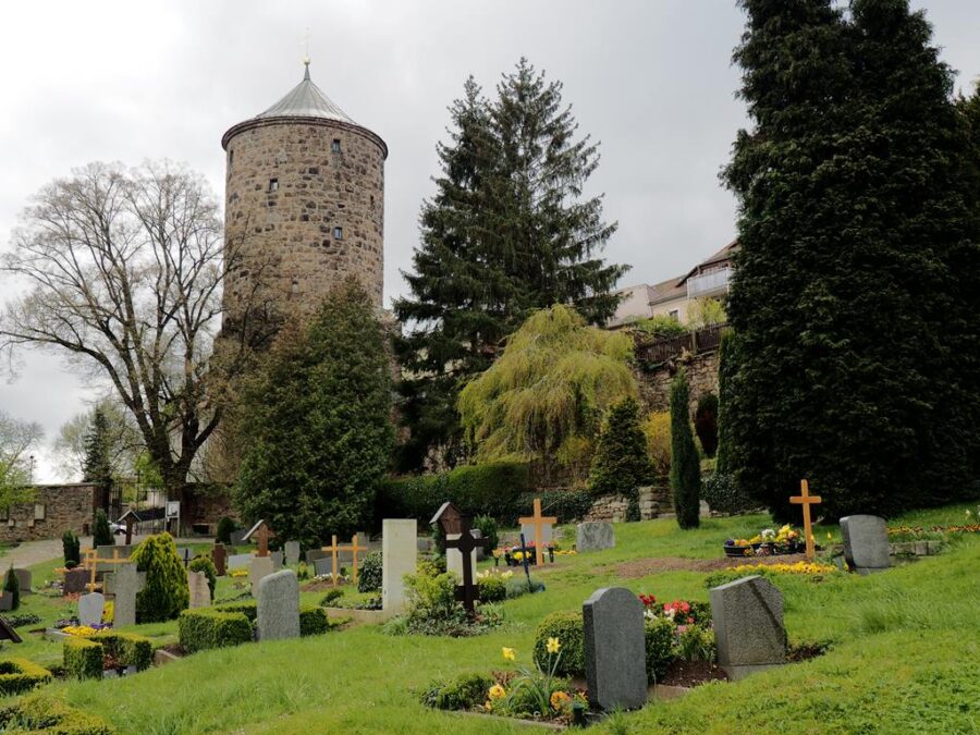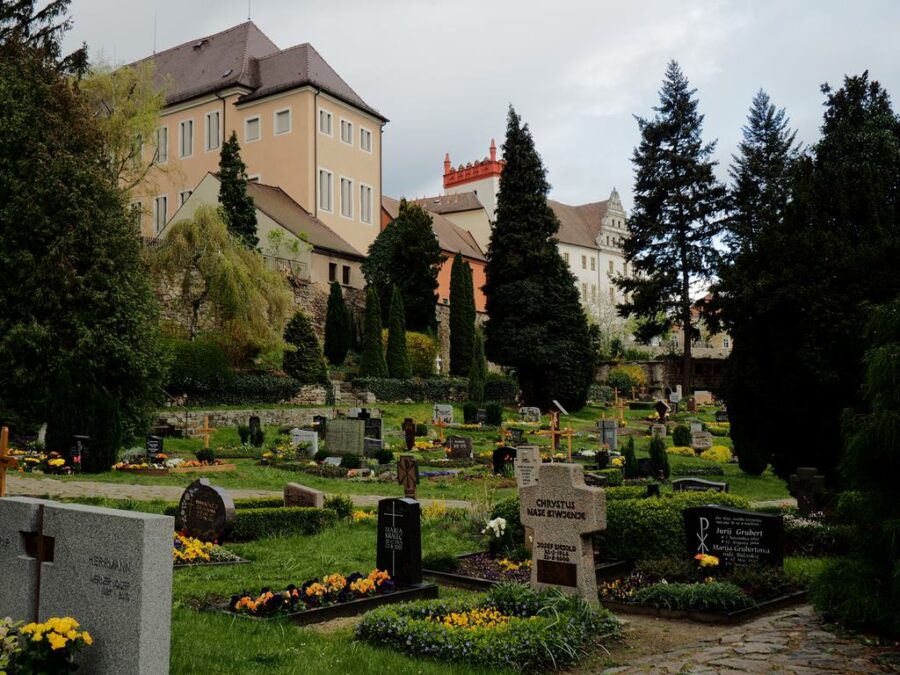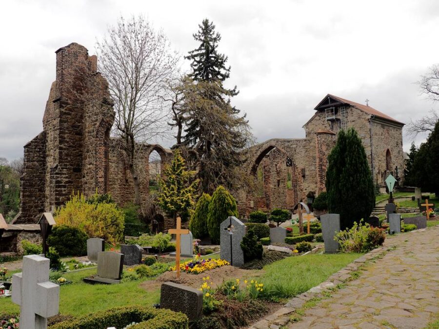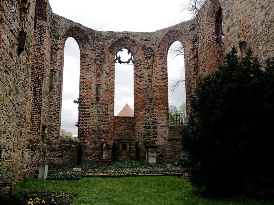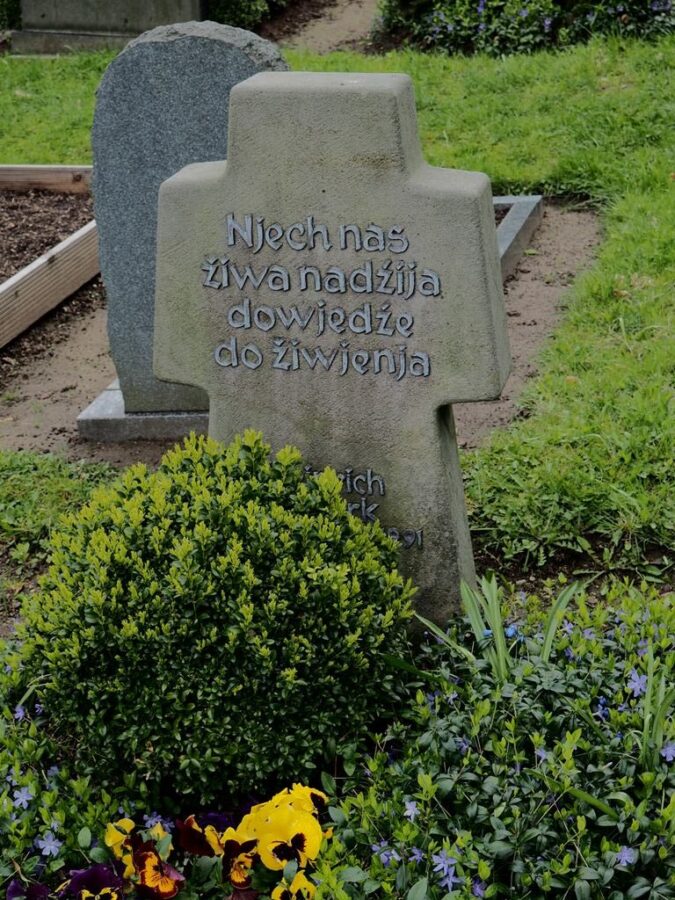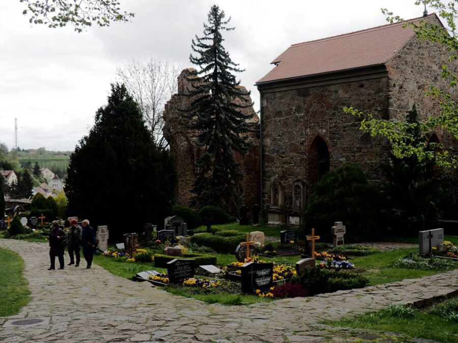 Tuż obok malowniczych ruin znajduje się cmentarz Serbołużyczan. Spoczywają na nim mieszkańcy miasta i najbliższej okolicy. Ludzie zwykli i zasłużeni dla budzenia i zachowania świadomości narodowej tej grupy etnicznej zamieszkującej niemieckie Łużyce (Lausitz), czyli tereny nad Nysą Łużycką i Szprewą. Serbołużyczanie są autochtonami, zasiedlili tę krainę w VI w n.e. i – w odróżnieniu od innych grup zachodnich Słowian, w znacznej mierze oparli się germanizacji. Zachowali swoja mowę, obyczaj, strój i poczucie wspólnoty. Budziszyn (Budyšin) jest ich stolicą. Spacerując po cmentarzu czytam inskrypcje na nagrobkach. Jedne po niemiecku, liczniejsze po serbsku. Łatwo zrozumieć epitafia, język naszemu bliski. Njech nas žiwa nadźija dowjedźe do žiwjenja…