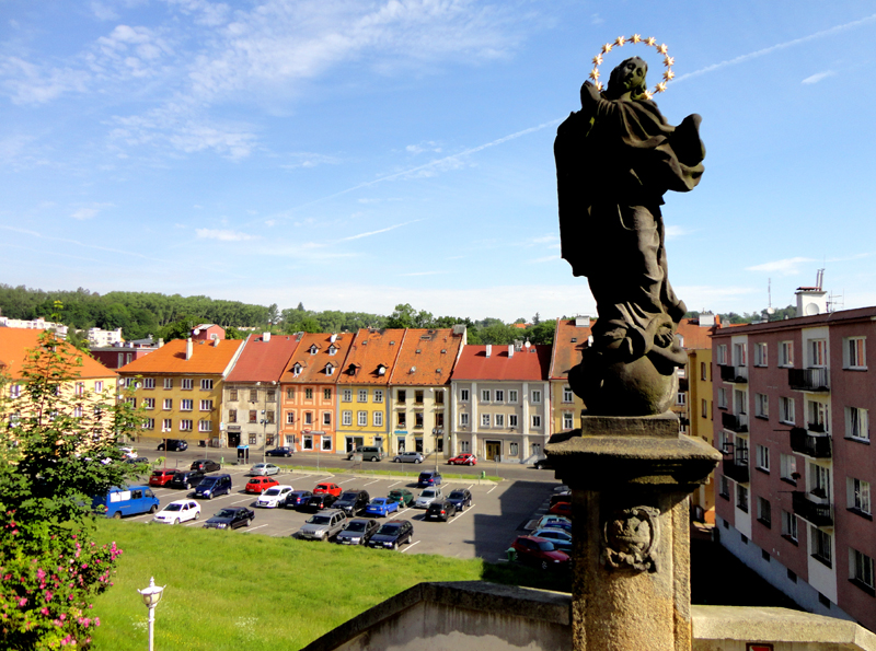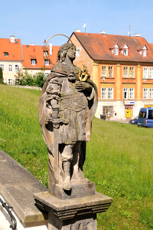 Łączy ją z nim wąska uliczka Kościelna. Farę wzniesiono na początku XIII w. na skraju skarpy opadającej ku Ohrzy. Od strony rzeki, ale kilkanaście metrów poniżej placu Kościelnego, rozciąga się drugi z placów starego Chebu ? Koszarowy (Kasárni), ale niezbyt ciekawy. Z mieszaną architekturą dwupiętrowych domów o spadzistych dachach krytych dachówką, wśród nich trzema zabytkowymi, oraz socjalistycznych bloków.