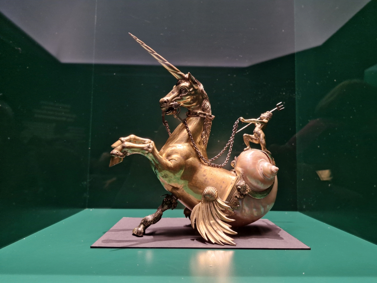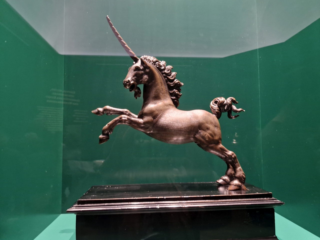 Wystawa z jednorożcem w roli głównej w poczdamskim Muzeum Barberini wypełniona jest rozmaitymi obiektami. Są tu obrazy wypełnione zwierzęcą menażerią, a na jednym z nich z martwą naturą pojawia się słynny róg jednorożca, rzeźby, metaloplastyka, a w centrum uwagi naturalnej wielkości leżący jednorożec, do którego może warto by się przytulić. Najstarszym obiektem jest gliniana tabliczka z wyrytym wizerunkiem jednorożca. Pochodzi z drugiego tysiąclecia p.n.e.