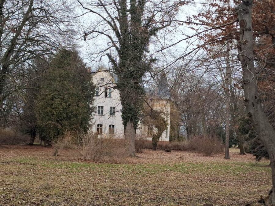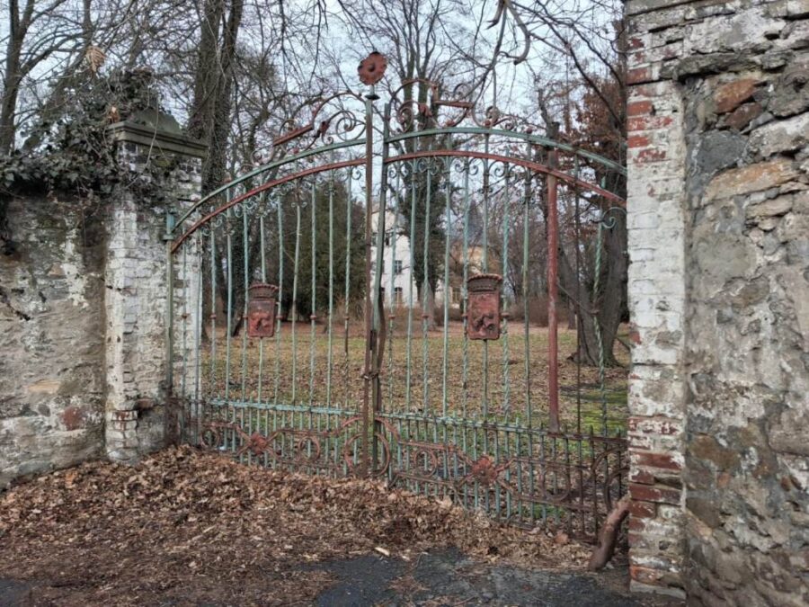 * Drugim ciekawym obiektem jest zespół pałacowy, wzniesiony pod koniec XIX wieku ze sporym parkiem angielskim. Brama zamknięta na kłódkę. Zdaje się, że jest również w obszarze zainteresowań inwestora.