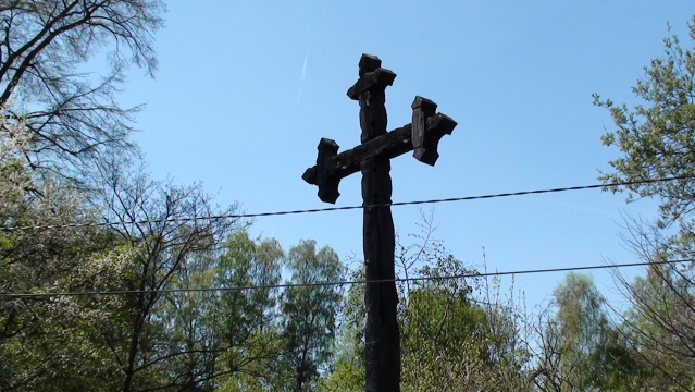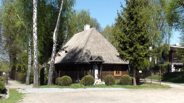 Tu znajdował się drewniany zabytkowy kościół pod wezwaniem Matki Bożej Królowej Polski, który doszczętnie spłonął w 2002 roku. Został tylko drewniany krzyż i tabernakulum oraz miniaturka budowli. Jednak miejsce łaskami słynące i kult Pana Jezusa Miłosiernego trwa nadal.