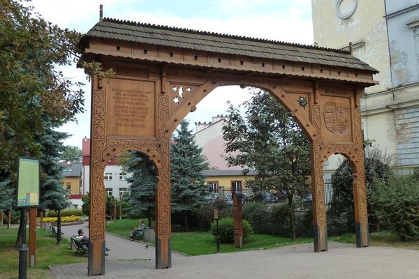 Ślady tych ostatnich znajdujemy u progu naszej wędrówki po mieście, na ulicy Krakowskiej. Akurat trwa remont nawierzchni, więc spiesznie przepychamy się w stronę rynku, by jak najszybciej dotrzeć do jakiegoś spokojniejszego miejsca. I wtedy naszą uwagę przykuwa bogato rzeźbiona, drewniana konstrukcja, będąca wejściem na zaciszny skwer. To tzw. brama seklerska. Postawiono ją w 2001 r. z inicjatywy ambasadora Węgier w Polsce, jako znak przyjaźni obu krajów i sympatii do miasta, które dla Węgrów stało się szczególnie bliskie ? tu urodził się bohater narodowy obu krajów ? generał Józef Bem.