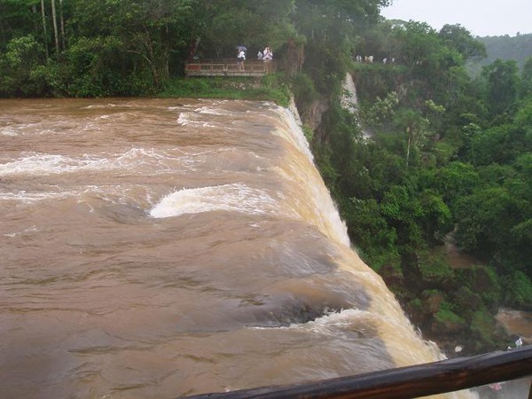 Dojazd na wodospady to łatwizna. Miejski autobus odjeżdża z dworca co pół godziny. Podroż trwa jakieś 30 minut, dojeżdża się pod samą bramę parku. Bilet na cały dzień kosztuje 60 peso. Niestety, zaraz po przejściu przez bramę wejściową, podekscytowana, z biletem w ręku, zostałam całkowicie znokautowana przez? pogodę. Chmury pojawiły się z nikąd, ochłodziło się i lunęło jak z cebra. Razem z innymi turystami schowałam się pod daszkiem restauracji. Najgorsze, że wcale nie zapowiadało się, że zaraz przestanie. Jestem w  japonkach, szortach i cieniutkiej bluzie, ale nie mam zamiaru rezygnować. Zawrócić teraz, po przekroczeniu bramy, po zapłaceniu za wstęp?