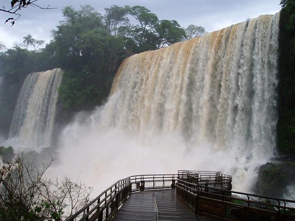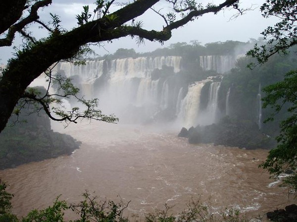 Do wodospadów mam jeszcze spory kawałek drogi, a już słychać huk opadającej wody i czuje się lekkie drżenie ziemi. Chyba tylko podekscytowanie, że zobaczę niesamowite zjawisko, pchało mnie do przodu w środku tej okropnej ulewy.