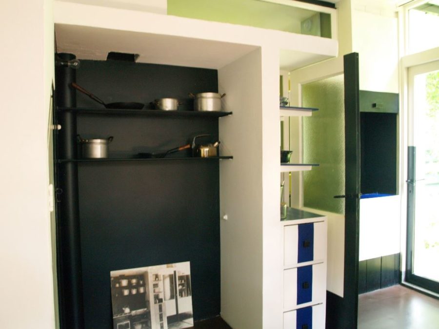 I zaprojektował go dla niej Gerrit Rietveld, dla którego było to nie lada wyzwanie, gdyż on sam nie był architektem; był projektantem mebli, stolarzem i właścicielem warsztatu meblowego w Utrechcie. W 1919 r. dołączył do luźnego ruchu De Stijl, którego nazwa wyprowadzona została wprost z tytułu magazynu o sztuce współczesnej, założonego w 1917 r. przez Theo van Doesburga. Członków ugrupowania łączyła idea „nowego stylu” w sztuce.