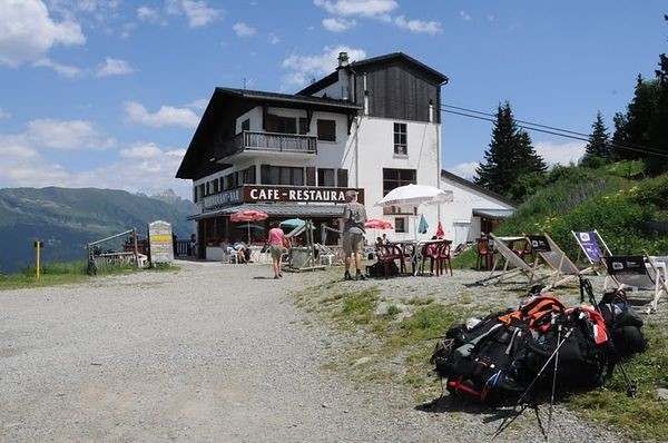 Po ponownym zebraniu się, odprowadzamy Rafała, którego wciąż boli kolano, na pociąg. Nie wiemy za bardzo, w jakim kierunku iść, ruszamy więc jedyną dobrze oznaczoną drogą i bardzo stromą ścieżką na szczyt Mont Lachat. Stromy teren zmienia się z dżungli w płaską alpejską łąkę ? siodło Col du Mont Lachat. Widoki wynagradzają nam trud wspinaczki, ale następnym razem proponuję iść jednak wzdłuż torów pociągu.