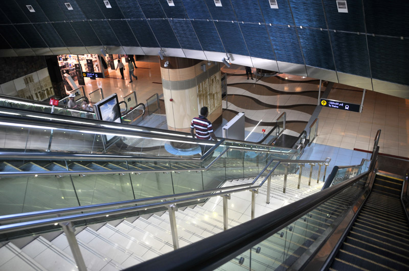 * zieloną, znacznie krótszą, o trochę dziwnym kształcie, przebiegającą jednak od Etisalat, przez m.in. wolnocłową strefę tego samego portu lotniczego, a następnie również przez Deirę i starą część miasta po południowo ? wschodniej stronie Creeku, aż do jego oddalonego brzegu i stacji o tej nazwie.