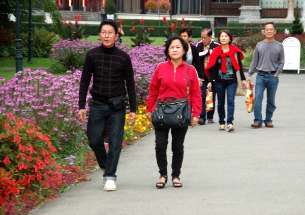 Podczas krótkiego spaceru przez Interlaken do Parku Zdrojowego i znajdującego się w nim kasyna i jego restauracji Spycher mijaliśmy liczne grupy turystów, głównie Azjatów. Ale ich masa w restauracji była dla mnie wręcz szokiem.