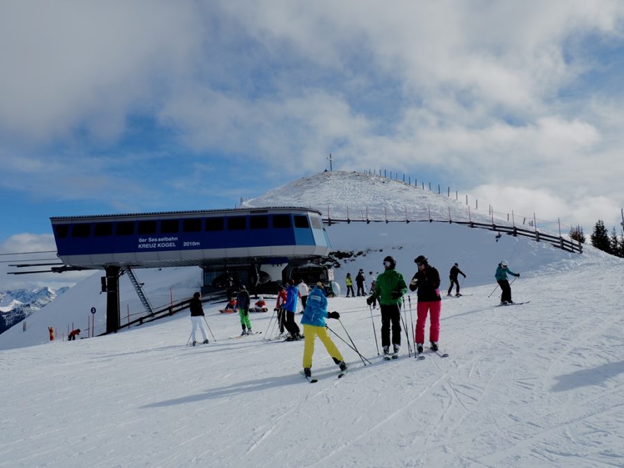 Najwyżej wyjeżdża się tu pod sam szczyt Kreuzkogel (2017 m n.p.m.). Nie należy mylić go z górą o tej samej nazwie na końcu Gasteinertal, w ośrodku Sportgastein. Tamta jest o ponad sześćset metrów wyższa. Na marginesie: wiele szczytów w okolicy nosi nazwę, której elementem jest ?- kogel?. Ten człon nazwy oznacza górę z zaokrąglonym szczytem. I rzeczywiście, wypisz-wymaluj taki jest ten wierzchołek. W dodatku, także zgodnie z nazwą, na szczycie stoi krzyż (Kreuz). Można podejść do niego, po widoki. To tylko kilka kroków od górnej stacji wyciągu.