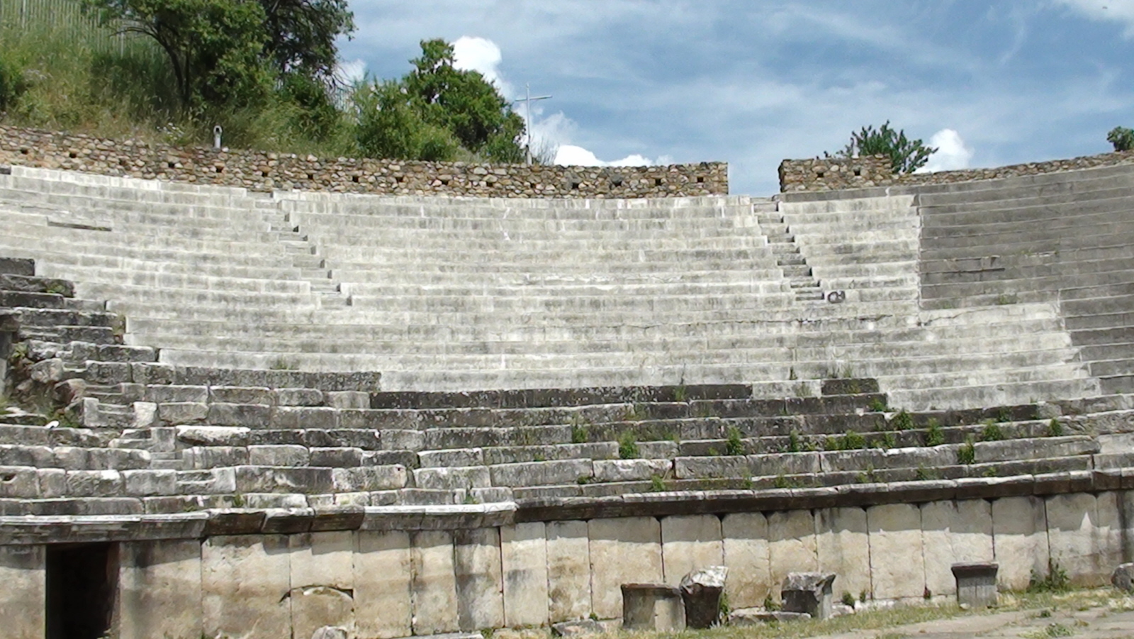 Na terenie dawnego miasta odkryto pozostałości łaźni i kilku kościołów. Zrekonstruowano duży amfiteatr z marmurowymi siedzeniami. Poniżej są ceglane arkady. Teatr zbudował rzymski cesarz Hadrian. Było to w centrum ówczesnego miasta, na wzgórzu. Odnaleziono mały bilet z kości, co było najwcześniejszym dowodem na lokalizacje teatru. Sam amfiteatr odkopano dopiero w 1968 roku. Wewnątrz znaleziono trzy klatki dla zwierząt i tunel. Kiedy zakazano walk gladiatorów, teatr przestał istnieć, a było to pod koniec IV wieku n.e.
