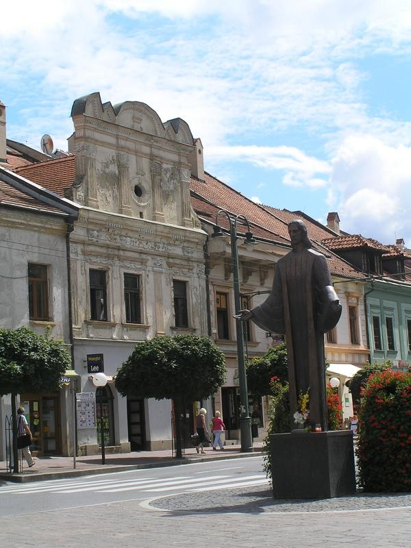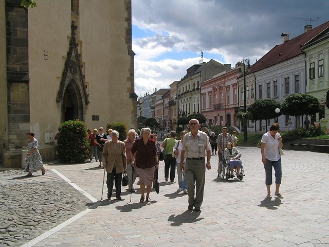 Wróćmy jednak na preszowską starówkę, której urbanistyczny układ do złudzenia przypomina koszycką. Skupia się wokół ulicy Hlavnej, rozszerzającej się w długi wrzecionowaty rynek. Zabytkowe śródmieście wyłożone jest ozdobnymi brukami, zdobią je też zieleńce. Pośrodku rynku jest śliczny skwer z fontanną Neptuna, którą na początku XIX w. postawił Żyd Markus Hollander w podziękowaniu miastu za uzyskane obywatelstwo. Główny plac otaczają okazałe piętrowe kamienice z gotyckimi, renesansowymi i barokowymi detalami architektonicznymi. Niektóre są zwieńczone niezwykłymi skrzydlatymi attykami.