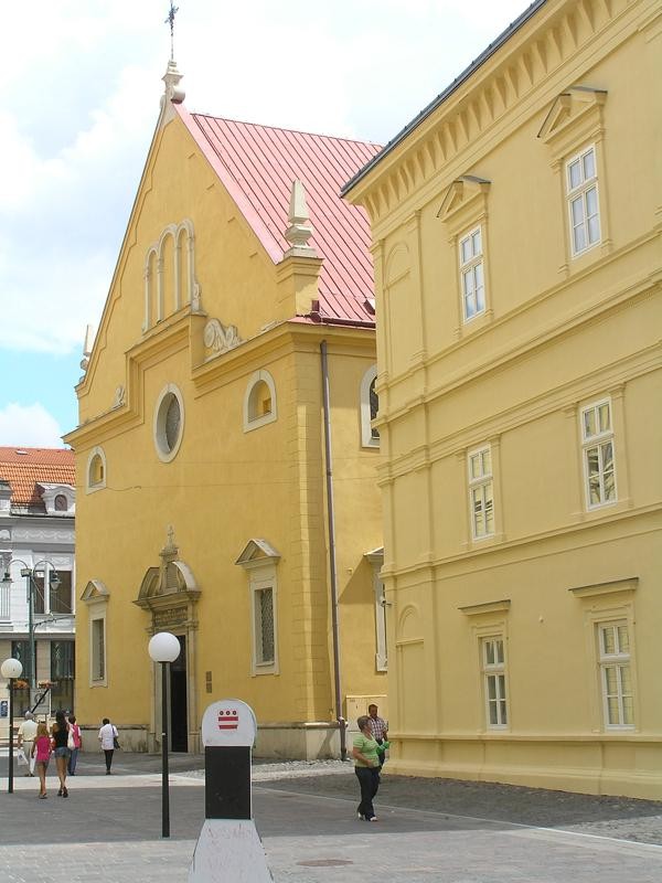 Nieopodal widać wczesnobarokową dwuwieżową fasadę kościoła Franciszkanów. Świątynia wraz z przyległym klasztorem powstała ok. 1380 r., jednak na początku XVIII w. została zupełnie przebudowana. We wspaniałym wnętrzu dominują barok i rokoko. Przed kościołem posąg św. Rocha ? chroniącego od zarazy.