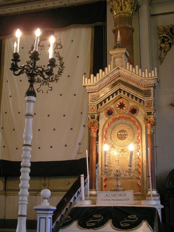 A zaledwie kilka kroków na zachód od kościołów zobaczymy synagogę ortodoksyjną w mauretańskim stylu, wzniesioną w ciągu 18 miesięcy i oddaną do użytku w święto Yom Kipur w 1898 r. We wnętrzu polichromia z różnorodnymi motywami orientalnymi autorstwa preszowskiego malarza Grazla. Na piętrze, w żeńskiej galerii wystawiono kolekcję judaików. Przed synagogą stoi wzniesiony w 1991 r. pomnik Żydów, którzy zginęli w czasie II wojny światowej.