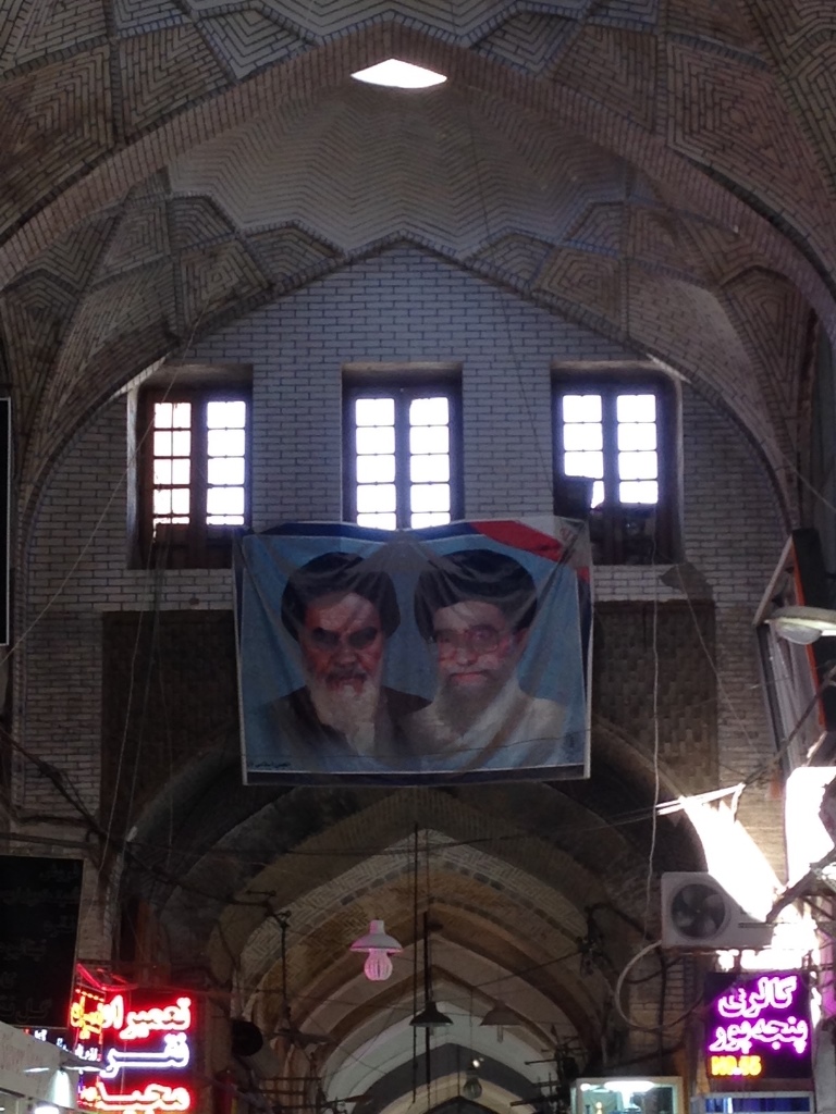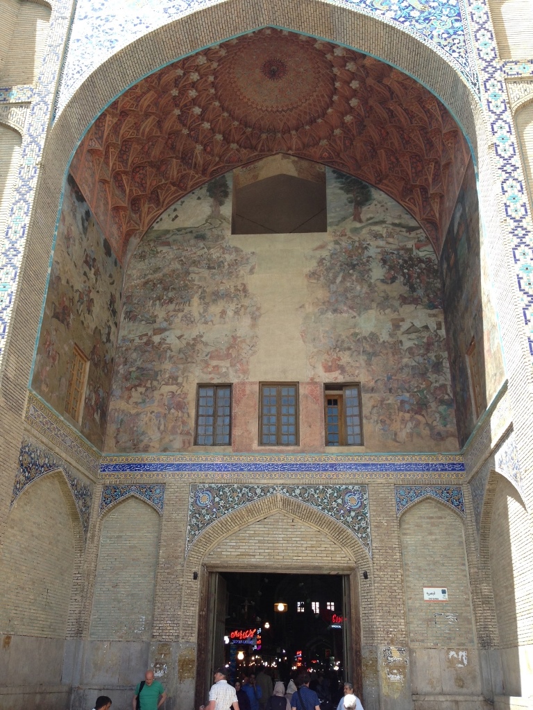 Bazar – e Bozorg – wielki bazar w Isfahanie ma długość 2 km z krótkimi odnogami, które powodują typową plątaninę, gdzie można się zgubić. Od strony Placu Królewskiego wchodzi się przez arkady do okalających go sklepików, ale główne wejście na bazar to brama, nad którą wiszą dwa portrety. Jeden przedstawia przywódcę religijnego Ali Khamenei, zwanego najwyższym przywódcą, drugi prezydenta Iranu Hassana Rohani. Bazar w Isfahanie jest jednym z najstarszych bazarów całego regionu Bliskiego Wschodu i Środkowej Azji.
