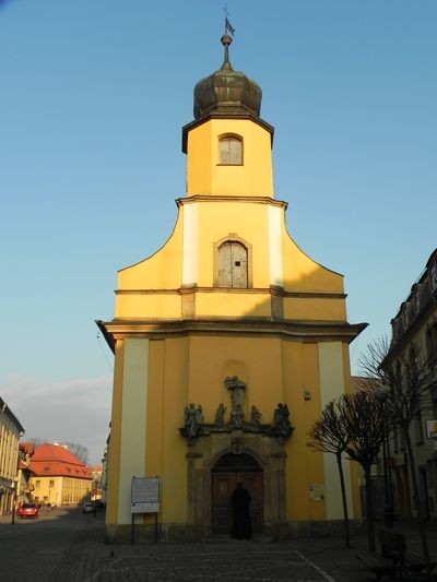 Spacerując jeleniogórskim deptakiem zwróciłam uwagę na stojący niemal w osi ulicy kościółek tylko dlatego, że jego fasadę ładnie oświetlało zachodzące słońce.