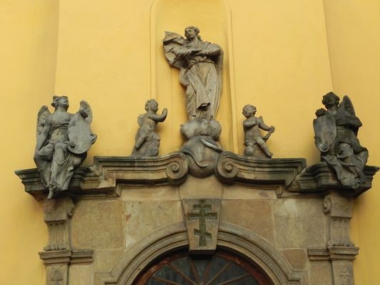 Choć nie jest to łatwe, bo na co dzień cerkiew zamknięta jest na klucz (miałam przypadkową okazję zajrzeć do jej środka), warto tu wejść, choćby po nabożeństwie, by przyjrzeć się, jak przenikają się kultury, style, religie i obyczaje. A na koniec jeszcze raz rzucić okiem na prawosławny krzyż w zewnętrznym portalu otoczony barokowymi rzeźbami przedstawiającymi Matkę Boską Wniebowziętą w otoczeniu aniołów. Wreszcie przyjrzeć się dwu krzyżom pokutnym wmurowanym w ścianę cerkwi-kościoła od strony ulicy. Takie krzyże stawiano najczęściej w miejscu zabójstwa, a wykuwano na nich narzędzia zbrodni. Na jednym z nich wyraźnie odczytamy rysunek miecza i kuszy.