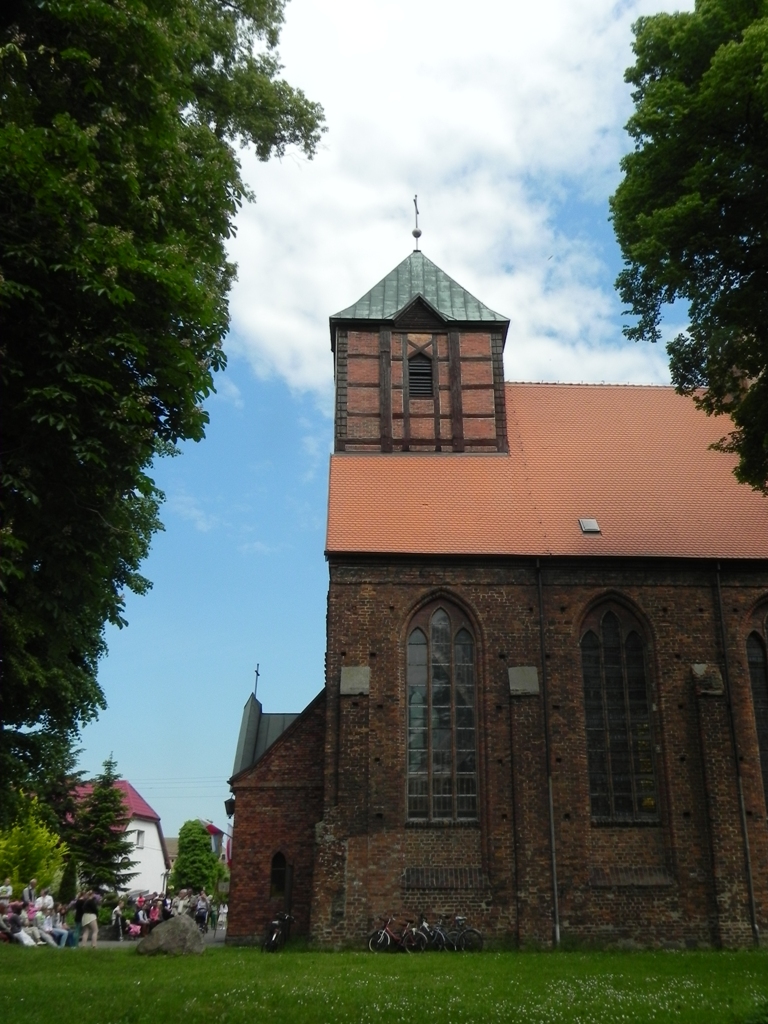 Zakonników sprowadził tu w 1331 roku książę pomorski Barnim III z rodu Gryfitów. Trudniący się uprawą roli mnisi zmeliorowali podmokłe tereny, zagospodarowali je i przystąpili do budowy swojej siedziby. Przystosowali do swoich potrzeb zbudowany już wcześniej ? w 1299 roku ? drewniany kościół pod wezwaniem św. Krzyża. Tamten jednak nie zachował się do dziś. Nie zachowała się też zbudowana przez zakonników murowana świątynia. Współczesna budowla, choć gotycka, pochodzi z 1725 roku. Ze poprzedniego kościoła zachowała się tylko kaplica.