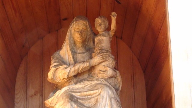 W środku kapliczki stała figura Matki Boskiej z Dzieciątkiem, a jej autorem był Wojciech Brzega. Później przeniesiono figurę do kaplicy w pobliskiej „Księżówce” a wstawiono gipsową figurę Matki Boskiej Niepokalanej. W maju 2003 r. kapliczka zapaliła się od stawianych zniczy, a figurka się rozsypała. Pozostał tylko żelazny krzyż wieńczący daszek. W ostatnich latach kapliczkę odbudowano a wewnątrz umieszczono kopię pierwszej figury.