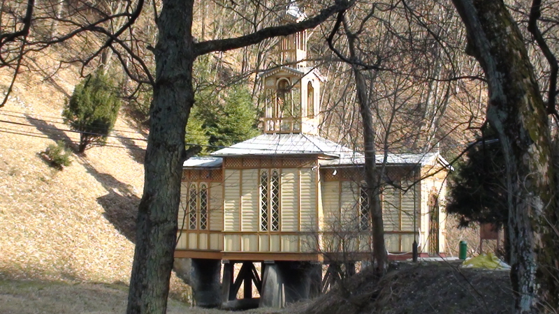 Władze nie wydały zezwolenia na budowę jakiejkolwiek świątyni. Próbowano uzyskać zgodę u Mikołaja II Romanowa, ostatniego cara Rosji, ale nie udało się. Jedynym możliwym rozwiązaniem było wykorzystanie rwącego potoku Prądnika. Mieszkańcy na własną odpowiedzialność wznieśli na nim drewniany kościółek zwany „Kaplicą na Wodzie”. Inicjatorem był ówczesny dyrektor zakładu hydropatycznego, doktor Stanisław Niedzielski. Kościołów nie wolno było budować na „ziemi”, a nie było zakazu budowania „na wodzie”.