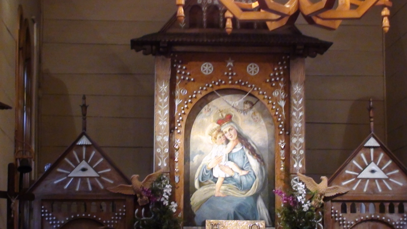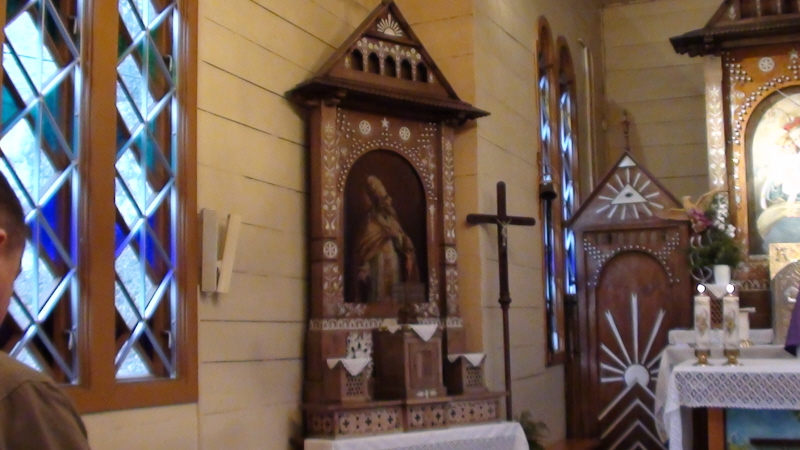 Kaplica jest p.w. św. Józefa Robotnika. Prace stolarskie wykonali miejscowi robotnicy pod kierunkiem stolarza I. Chmielowskiego. Kaplica ma kształt krzyża długości 11 metrów i szerokości 5 metrów. Wewnątrz są trzy ołtarze wykonane w kształcie szczytów chłopskich chałup. W szczycie głównego ołtarza umieszczono słońce, a pod nim figurki pięciu świętych. Figurki wykonał niejaki Kowalski z Białego Kościoła, pobliskiej wsi. Po bokach ołtarza znajdują się dwa orły, jako symbol Polski. Są one zawieszone ponad trzema unoszącymi się ku górze wężami, symbolizującymi zaborców Polski. Obraz Matki Boskiej Wspomożenia namalowała w 1901 roku, jedna z ówczesnych kuracjuszek. W 1972 roku powstał drewniany świecznik wykonany przez artystów ludowych z Kamionnej. Z tego samego okresu jest tabernakulum. Powstała też krata zewnętrzna powtarzająca ozdobny relief drzwi wejściowych. W 1983 roku, ołtarz soborowy został ozdobiony stylizowanymi kwiatami.