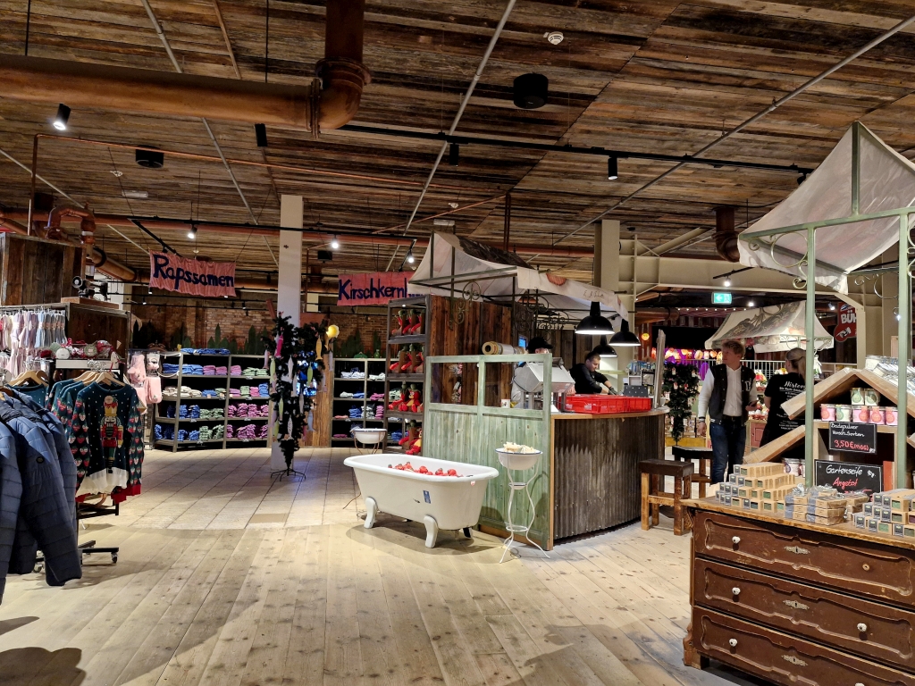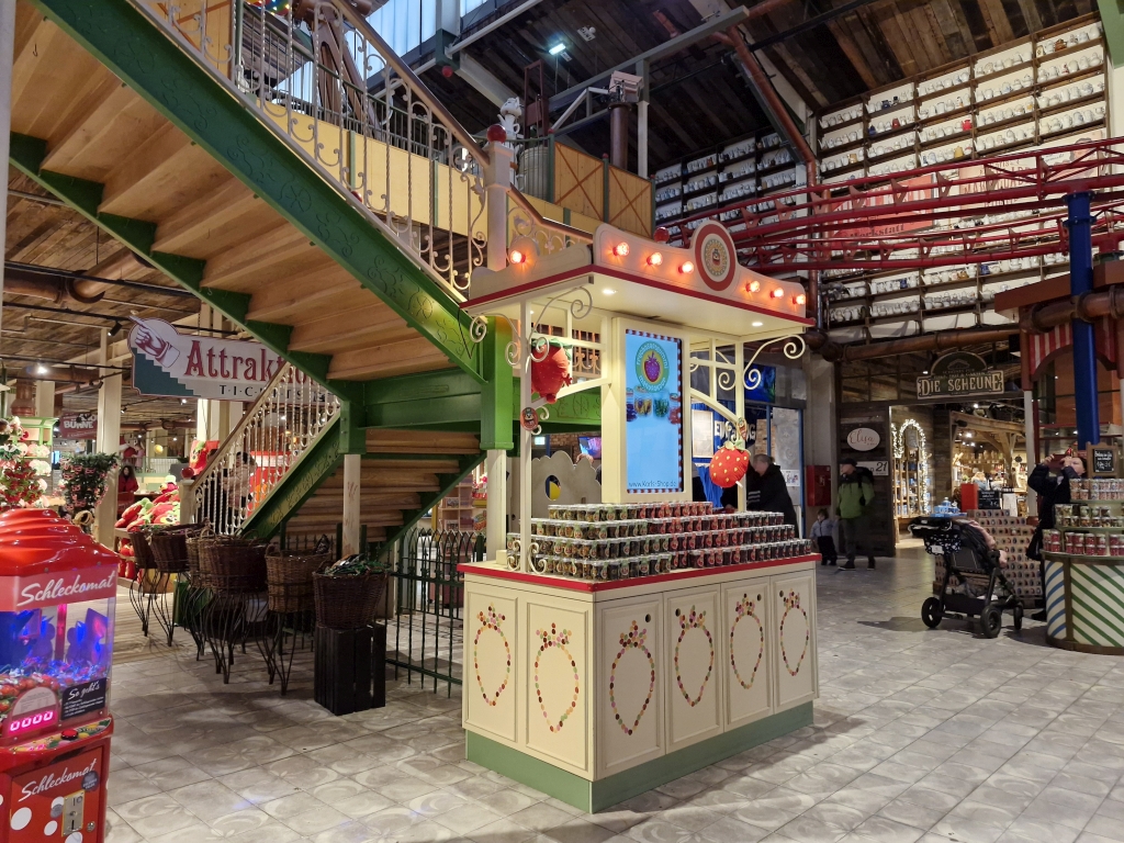 W Rövershagen, na 80 m kw. zbudowano wysoką halę z bajkowym wręcz wystrojem. Ściany wypełniają półki z tysiącami dzbanków do herbaty, pędzi w „przestworzach” kolejka z wagonikami, na regałach aż kipi od towarów – fajansu (kubków, filiżanek i talerzyków ozdobionych truskawką), słoików z dżemami, mydłami, nożami, kremami… Butelkami z sokami i niskoprocentowymi napojami, tekstyliami, książkami. Są stoiska z pieczywem i ciastami, wiszą kiełbasy. Na miejscu można się posilić tym i owym.