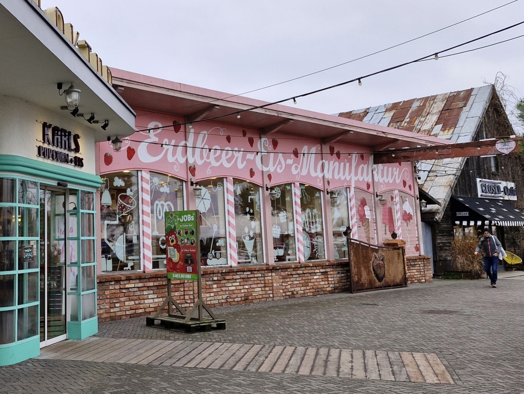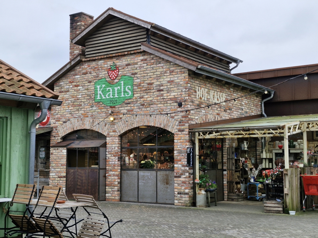 Do wystroju wykorzystano wiele akcesoriów kojarzących się z domem jak wanna czy wiadra i kosze, drewniane skrzynki, beczki. Jest kolorowo, a przed Bożym Narodzeniem – świątecznie. Całość tworzy labirynt zaułków. Na zewnątrz można zaopatrzyć się w sadzonki roślin. Karls jest dobrą metą podczas podróży, oferuje towary zależne od pory roku, ale zawsze króluje truskawka.