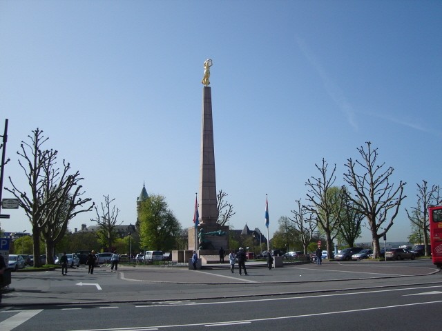 Place de la Constitution, skąd wchodzimy do katedry, znajduje się w miejscu zburzonego bastionu. Na tym placu stoi pomnik Gëlle Fra. Jest on poświęcony luksemburskim żołnierzom, którzy zginęli podczas wszystkich wojen. Pierwszy monument wzniesiono w 1923 roku upamiętniając żołnierzy poległych w I wojnie światowej. Na wysokiej kolumnie była postać kobiety w zwiewnej sukience, trzymająca w dłoniach wieniec laurowy. U stóp kolumny znajdowały się dwie postacie żołnierzy. Postać „kobiety” nie podobała się wielu luksemburczykom, ponieważ pomnik był naprzeciw katedry. W czasie II wojny światowej został zniszczony przez Niemców. Po wojnie odbudowano pomnik w pierwotnej jego formie, ku czci wszystkich poległych w czasie wojen, o czym świadczą daty na pamiątkowych tablicach.