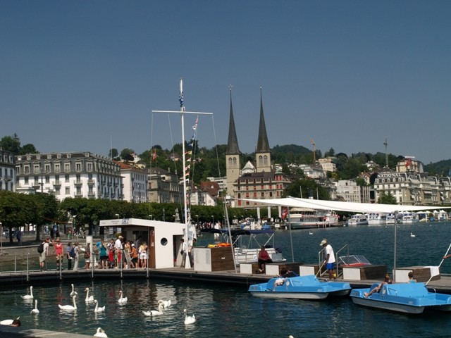 Strzelające w niebo stalowe spiczaste kopuły zapraszają do wędrówki na wschód bulwarem Schweizerenhof, przy którym ściągają spojrzenie bogate wystawy sklepów. Bulwar prowadzi wprost do Hofkirche – katedry p.w. św. Leodegara – patrona miasta. Dwie gotyckie wieże oszczędził pożar, który strawił kościół w połowie XVII wieku. Odbudowany natychmiast w stylu późnorenesansowym leży na niewielkim wzniesieniu z długim podejściem. Interesujące jest wejście do kościoła, „wciśnięte” pomiędzy dwie kamienne wieże, ozdobione niszą z kolorową postacią walczącego Archanioła Michała.