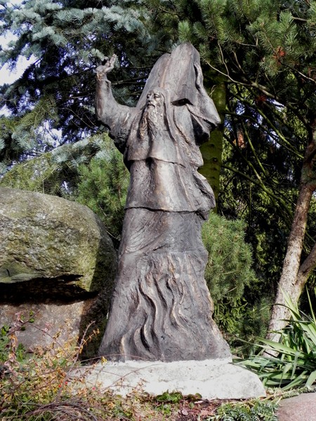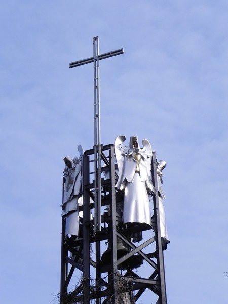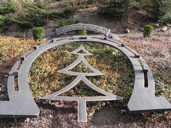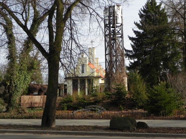 Zimowy spacer po kościelnym ogrodzie nie nasyci oczu zielenią, ale pozwala podziwiać małą architekturę, altanki, pergole, rzeźby i zgromadzone tu głazy. I przyjrzeć się ciekawej bryle kościoła, z przeszklonym wejściem i wysoką wieżą.