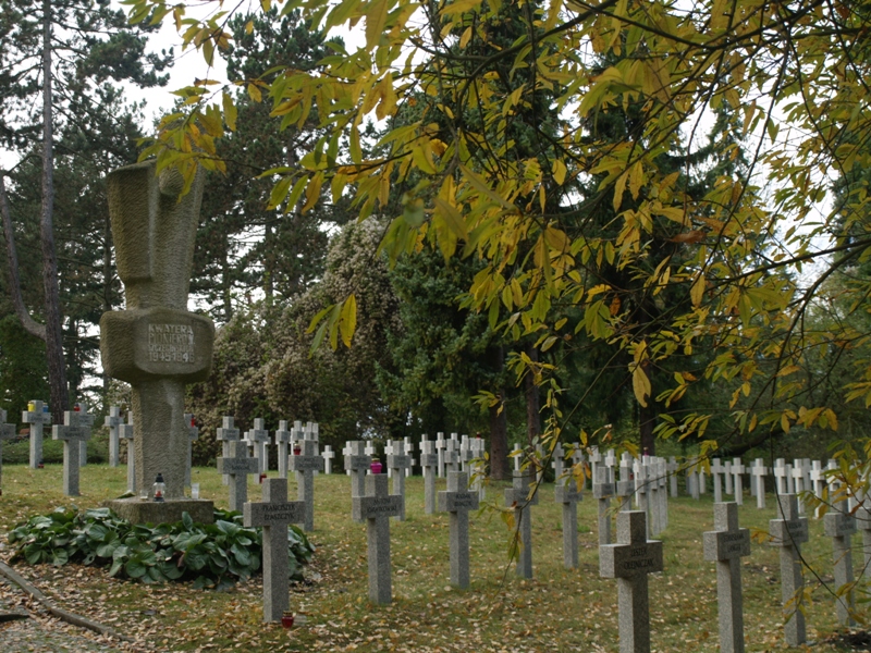 Kwaterę na polskie pochówki wyznaczono na zachodnim krańcu Cmentarza Centralnego wczesną jesienią 1945 r. na miejscu przygotowanym, ale wolnym jeszcze od niemieckich grobów. Do tego czasu grzebano zmarłych i zabitych gdzie bądź: na podwórkach rozwalonych bram, naprzeciw domów o rozbitych oczodołach okien, w parkach i na zieleńcach, przy kościołach, na małych poniemieckich cmentarzach, w alejach w cieniu drzew, żeby zakryć wstydliwą prawdę o śmierci zielenią majowej wiosny, żeby ratować żywych przed niemą agresją umarłych – jak wspomina Stanisław Lagun. Polska kwatera poświęcona przez ks. Floriana Berlika, pełniącego w Zarządzie Miasta funkcję kierownika wydziału ds. kościelnych, już w połowie 1946 r. zapełniła się ponad 400. grobami. Na wielu z nich widniała inskrypcja: Zginęli śmiercią tragiczną.