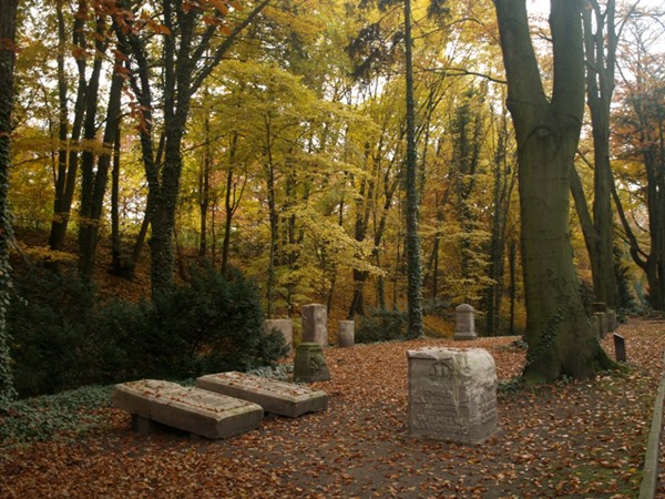 Na terenie lapidarium wśród najciekawszych nagrobków są m.in. pomnik nagrobny z wężem Georga Michaelisa – założyciela Towarzystwa Popierania Pochówków Całopalnych, nagrobek rodziny Neumann z figurą anioła proszącego o ciszę, nagrobek rodzin Schulze i Schubel w kształcie „latarni umarłych”, modernistyczny nagrobek Gertrudy Ziegenrücker z płaskorzeźbionym tekstem na całej powierzchni płyty czy też pomnik rodziny Leonard o zamknięciu w kształcie muszli. U progu lapidarium ustawiony został (przeniesiony z innego miejsca) nagrobek nadburmistrza Szczecina Hermana Hakena i jego żony Johanny. W 2007 r. zrekonstruowane zostały zaginione popiersia małżonków, a koszt rekonstrukcji sfinansowali dawni, niemieccy mieszkańcy Szczecina.