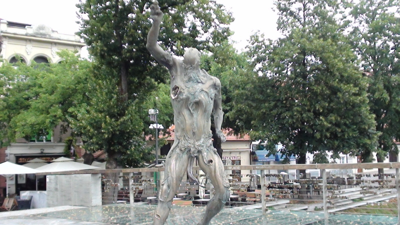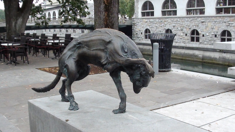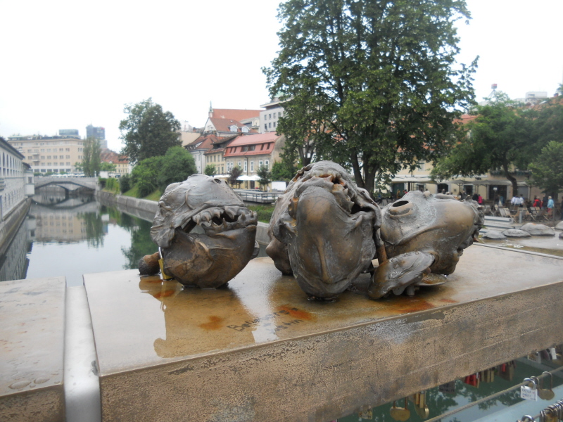 Za katedrą jest Vodnikov trg (Plac Vodnika) z dużymi halami targowymi. Targowisko tętni pełnią życia w sobotnie poranki. Jest tu pomnik V. Vodnika ? poety żyjącego na przełomie XVIII/XIX wieku. Przy nim nowopowstały Mesarski most z rzeźbami. Nie wspomniałam jeszcze o Moście szewskim (Čevljarski most). On jest z drugiego końca nabrzeża. Niegdyś było to miejsce handlu i brama wejściowa do miasta. Na takich mostach mieszkali i pracowali rzemieślnicy. Korzyść z tego mieli podwójną, bo mieli zawsze klientów i nie płacili podatków, bo nie mieszkali w mieście. Którym mostem by nie wszedł, to i tak wyjdzie innym, bo być w Lublanie, a nie przejść nabrzeżami, to tak? jakby tu nie być.