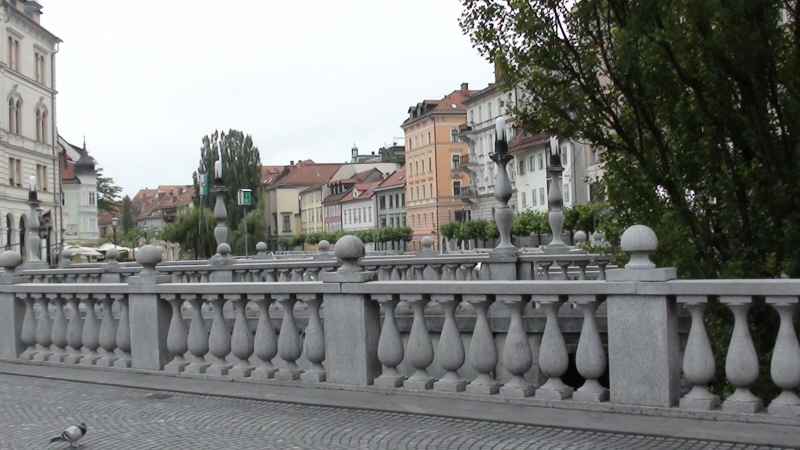 Architektem mostu, jak i wielu innych obiektów był Jože Plečnik, artysta słoweński. Miał on własny, niepowtarzalny styl. Wykorzystywał motywy bizantyjskie, islamskie i egipskie. Wiele jego projektów znajduje się w Wiedniu i Pradze. Promenada nad rzeką i niektóre kościoły to też dzieło tego architekta. Sąsiedni widoczny most to Smoczy most ? Zmajski most. Zbudowano go w 1901 roku. Zdobią go posągi smoków. Jeden z nich widnieje w herbie miasta. Na innym moście ?siedzą? żaby. Na centralnej ulicy Starówki końskie odchody, jako pamiątka poruszających się tu koni. Wiele takich dziwacznych pomników można tu spotkać.