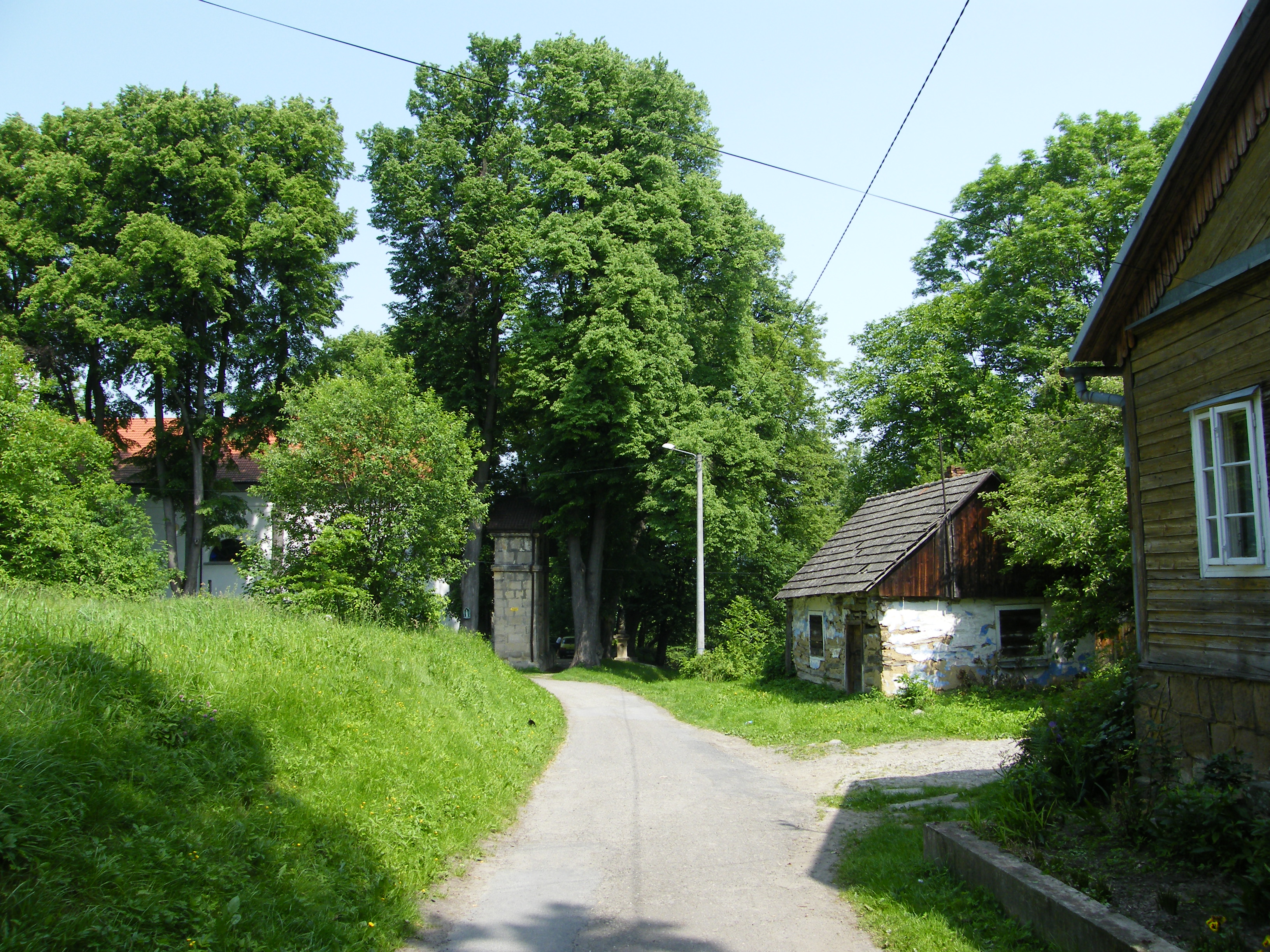 Do tej najciekawszej historycznie części Dobczyc można wejść trzema drogami: żółtym szlakiem od zapory, kamiennymi schodami koło cmentarza „Jeleniec”, lub ulicą Przedbronie, przez bramę wjazdową prowadzącą do zamku. Ja idę właśnie tędy, wzdłuż pozostałości murów obronnych Starego Miasta. Miały kształt nieregularnego pięciokąta, długość 700 metrów, a grubość – 1,5 metra. Mury zostały mocno zniszczone podczas potopu szwedzkiego. W XIX wieku częściowo je rozebrano. Do dziś zachowały się relikt baszty i bramy wjazdowej, mur koło kościoła na wzgórzu oraz na stoku opadającym do Jeziora Dobczyckiego. Za bramą spotkamy bardzo stare gospodarstwa i chylące się ku upadkowi chaty. Dalej jest kościół św. Jana Chrzciciela i piękna dzwonnica. Obok kościoła zlokalizowano fantastyczny skansen. Zwieńczeniem tego miejsca są ruiny zamku dobczyckiego wznoszącego się ponad jeziorem.
