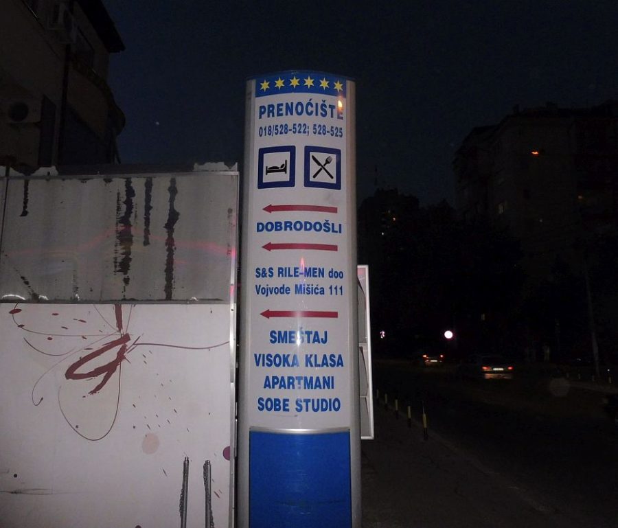 Ale gdy wyjrzałem przez okno to pomyślałem że to jest normalka w mieście Nisz. Na dachu marketu i biura miejscowej stacji telewizyjnej było 6 lamp. Licząc od prawej jedna była prawdopodobnie dobra, drugą przerobiono na antenę satelitarną, trzecia miała założony klosz na bakier, a pozostałe trzy to były tylko słupki. Horror, czy tu straszy ?