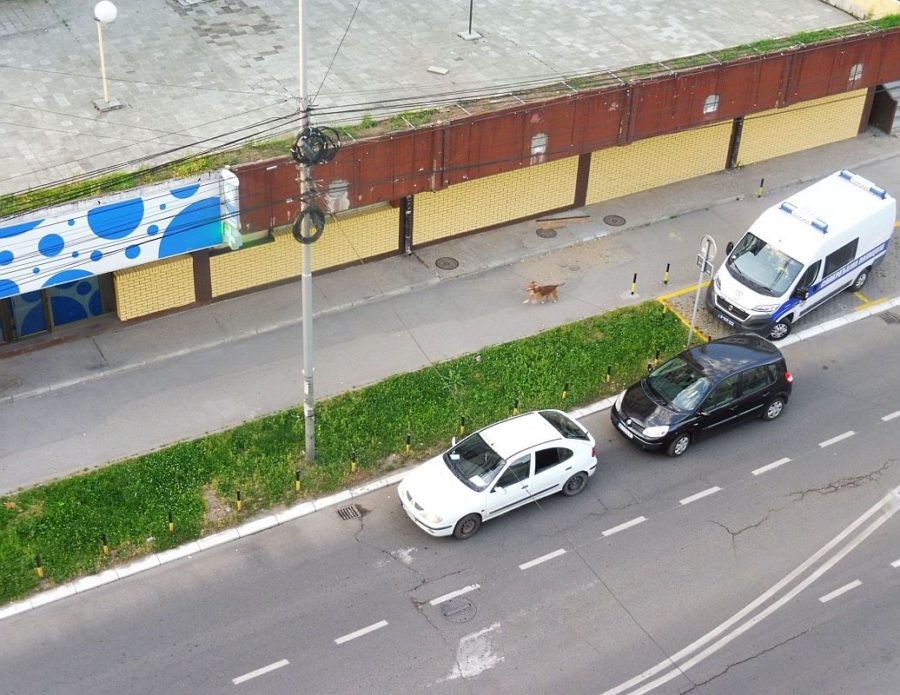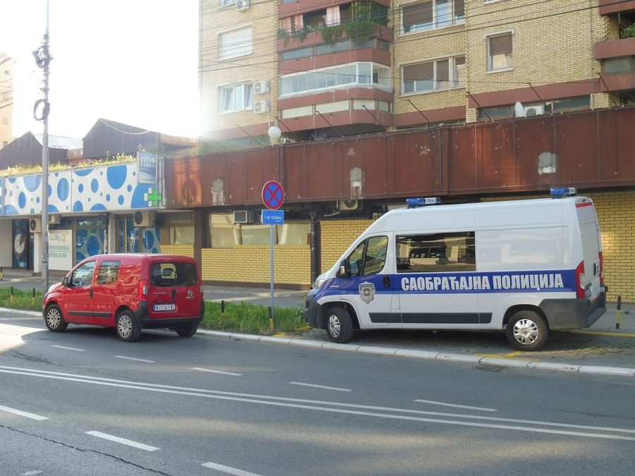 …na pasie stawiają samochody które przyjechały do piekarni (PIEKARA, pisana cyrylicą). Tylko jak stawiają. Stoją za znakiem „zakaz parkowania i postoju przy chodniku”, o czym informuje niebieska tabliczka pod znakiem (serb.: I na trotoaru). No i co z tego, każdy kiedyś złamał jakieś przepisy. Ale oni stoją przed parkującym radiowozem policji drogowej. Spojrzałem dalej: o kurczę – pomyślałem. Policja drogowa, samochód miejscowej telewizji ntv… i jakiś prywatny, parkują. Ale jak parkują!!! Przecież tak nie można.