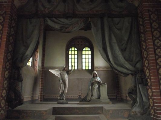 Każda kaplica utrzymana jest w innym stylu architektonicznym. Zobaczymy m.in. gotycka katedrę, klasycystyczny kościółek oraz zupełnie nowocześnie wykończone budowle. Spacerując przechodzimy obok mauretańskiego zamku czy średniowiecznej baszty. Wewnątrz każdej z kapliczek można zobaczyć scenę, o której opowiada kolejna tajemnica różańca. Najciekawsza jest scena Nawiedzenia NMP w kaplicy Nawiedzenia. Warto przyjrzeć się kotarze z drewna tak miękko układającej się, jakby była wykonana z „lejącej się” tkaniny.