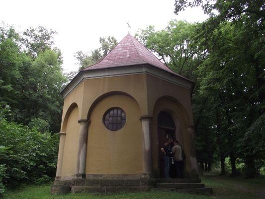Drogą Różańcową prowadzi żółty szlak. Bajkowa architektura kapliczek ładnie komponuje się z zielenią otaczających drzew, sprzyjając modlitwie i zadumie.