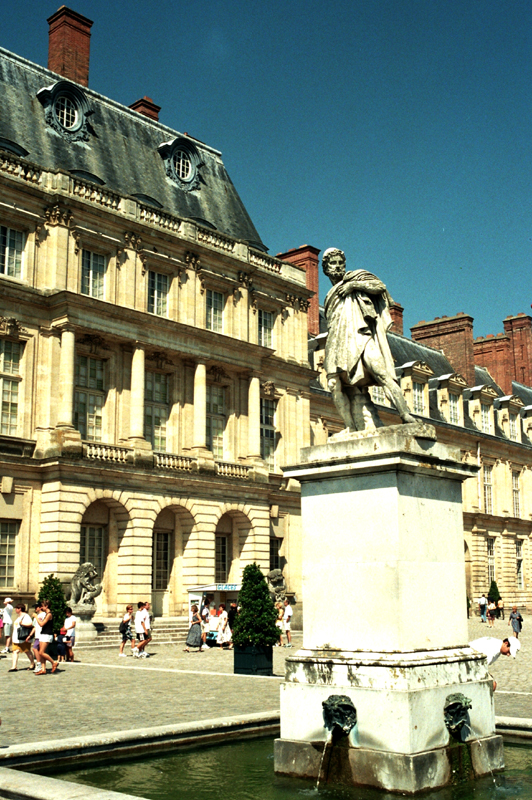 Ten kompleks pałacowo-ogrodowy położony niespełna 60 km na południowy wschód od historycznego centrum Paryża, był przez kilka wieków rezydencją królów Francji. I chociaż później przyćmiły ją Luwr i Wersal, nie sposób poznawać dzieje i architekturę tego kraju bez zwiedzenia – a potrzeba na to przynajmniej dnia – Château de Fontainebleau. Zdaniem wielu architektów i historyków architektury to właśnie budowa, a ściślej kolejna rozbudowa i przebudowa tego pałacu, zapoczątkowała okres nowoczesności w architekturze kraju. Dzieje tego zespołu architektonicznego, nazwiska władców oraz wybitnych twórców z nim związanych, to ogromny temat. Chętnych poznania go dokładniej odsyłam do bardziej kompetentnych źródeł. Wspomnę więc tylko, że król Ludwik VII (1120-80) z dynastii Kapetyngów wybudował w tym miejscu opactwo. Wzniesiono wówczas również donżon ? obronną wieżę oraz kaplicę Najświętszej Marii Panny i św. Saturnina. A poświęcił je w 1169 r. wygnany z Anglii biskup Canterbury Thomas Becket. Siedzibą królów Francji Fontainebleau stało się, według kronik, w roku 1137.