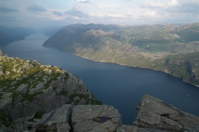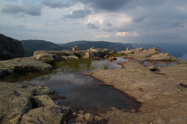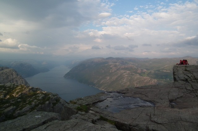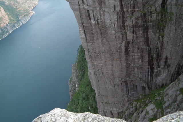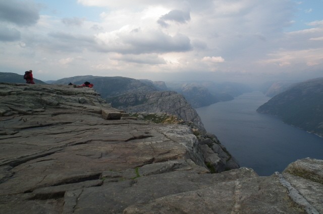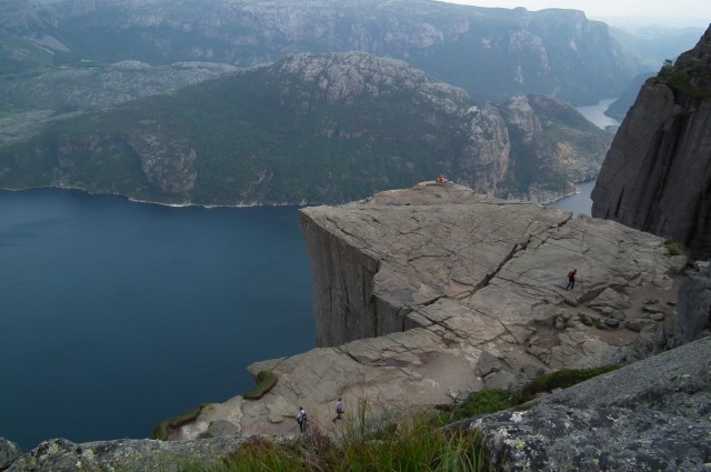 Mimo że nie widać całej ściany, Preikestolen robi ogromne wrażenie. Spojrzenie w dół bądź wejście na skraj jest nie lada wyczynem (zwłaszcza przy wietrze, przy którym trudno ustać na nogach ? tak strasznie wiało podczas naszej wizyty). Ponoć pogoda jest tu bardzo zmienna. Dla zapalonych fotografów jest miejsce na biwak ciut wyżej na zachód od ambony ? jakieś 50-70 metrów w linii prostej. Można rozbić sobie namiot i uchwycić ścianę w promieniach wschodzącego słońca.