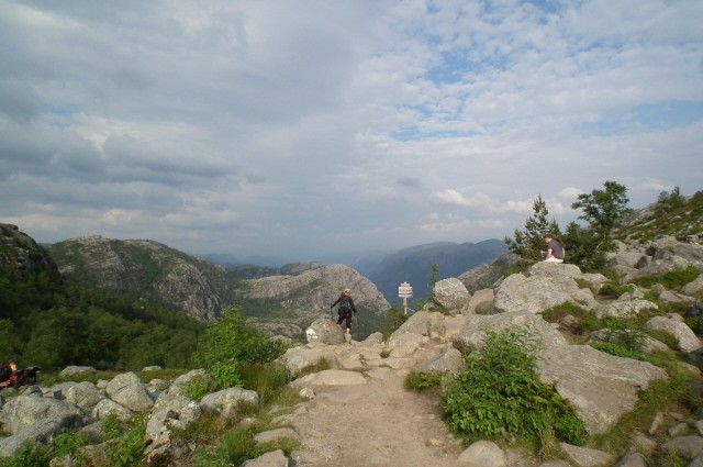 Na dojście do tego cudu Norwegii potrzebujemy około 1,5 godzinki. Ścieżka bardzo przyjemna, z jednym odcinkiem dość stromego podejścia po kamieniach, a reszta szlaku jest przyjemnym spacerkiem przez las i płaskowyż. Przed samym celem mamy dwie możliwości dodarcia do ściany. Ścieżka w prawo prowadzi bezpośrednio na Preikestolen z krótkim, stromym fragmentem podejścia, ale za to z pięknym widokiem na fiord i sam Preikestolen. Idąc prosto pójdziemy łagodniejszą ścieżką, obchodząc górę, dalej dróżką poprowadzoną skrajem fiordu aż do Preikestolen, na który wychodzimy ze wschodniej strony.