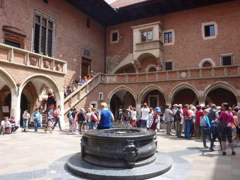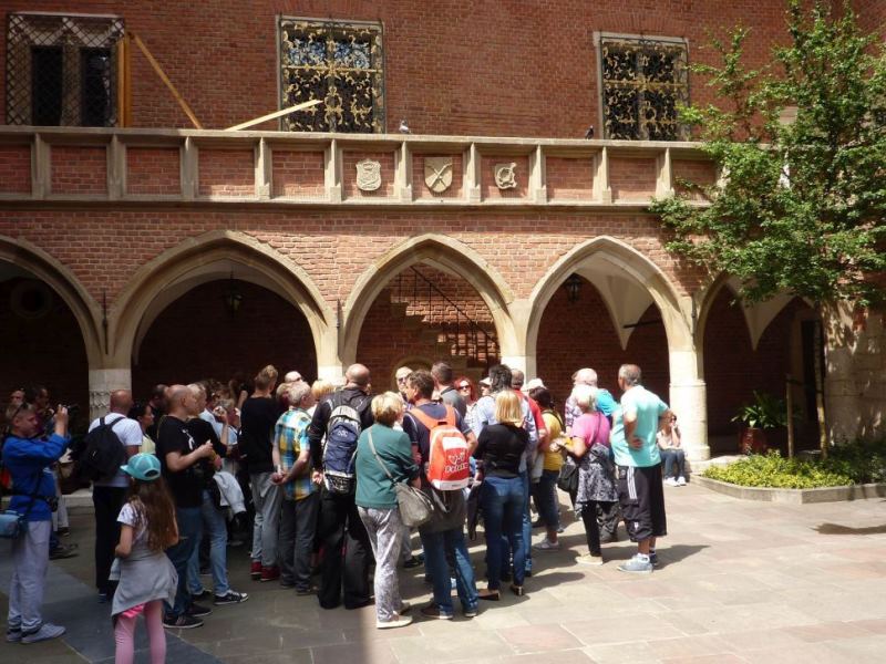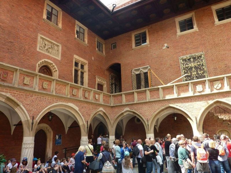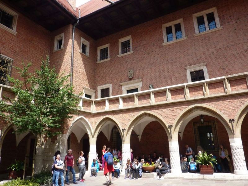 Krakowskie Collegium Maius jest zespołem połączonych średniowiecznych kamienic z kamienia i cegły na planie czworoboku. W XV wieku kamienice w rejonie kolegium połączono tworząc między nimi arkadowy dziedziniec z krużgankami. Z dziedzińca można obserwować zegar który wygrywa melodie i prezentuje pochód figur przedstawiających postacie związane z uniwersytetem.